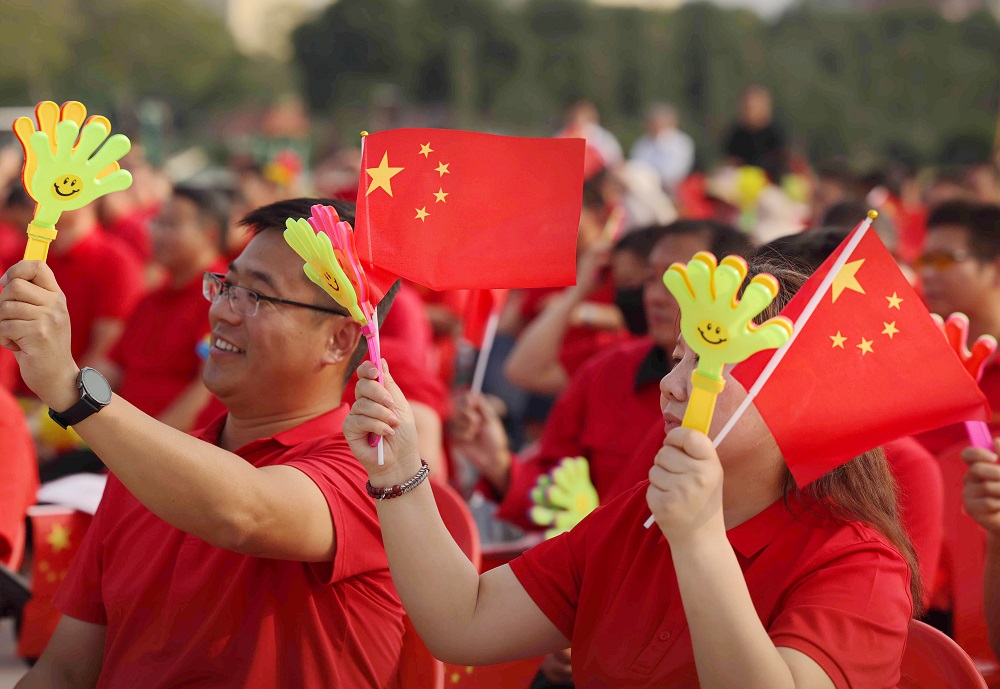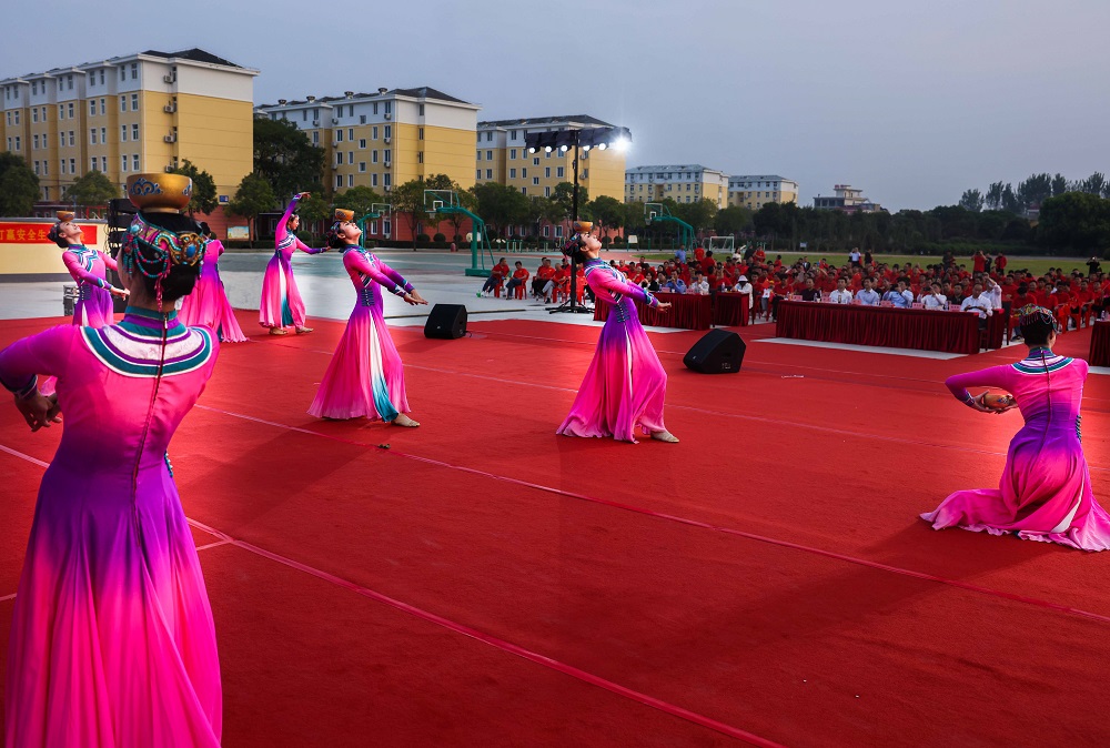演出在舞蹈《鼓舞神州》中拉開序幕,隨后男女聲二重唱《新萬泉河水》、相聲《機(jī)智問答》、魔術(shù)《快樂十分》、京劇《武家坡》、小品《金錢與孝子》等節(jié)目輪番上演。一首首膾炙人口的歌曲,一段段婉轉(zhuǎn)悠揚(yáng)的旋律,一支支優(yōu)美多姿的舞蹈,讓現(xiàn)場觀眾沉浸在歡樂的氛圍中。臺上演員們?nèi)橥度?,臺下觀眾積極互動,或跟唱歌曲,或打著節(jié)拍,現(xiàn)場氣氛融融。最后,演出在歌曲《奮斗吧追夢人》中圓滿落下帷幕。