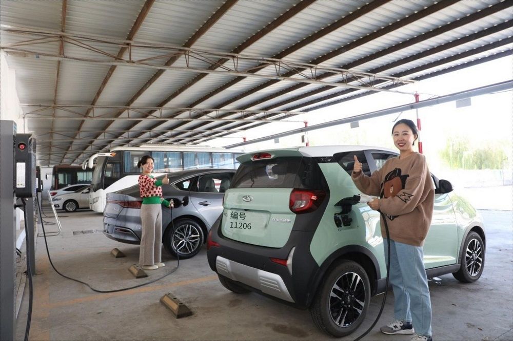 桃園礦職工在礦內(nèi)為新能源私家車充電。(陳敏奎 攝)