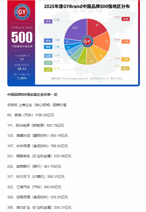 近日,GYBrand全球品牌研究院發(fā)布2025年度中國(guó)500最具價(jià)值品牌名單,淮北礦業(yè)以品牌溢價(jià)204.21億元,再次榮登榜單,位列395位。