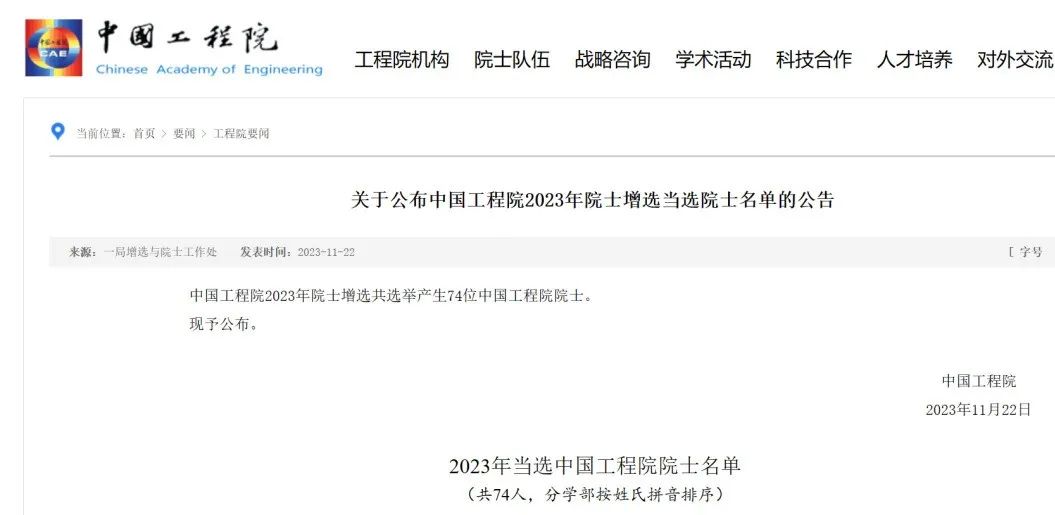 11月22日,2023年兩院院士增選結(jié)果正式揭曉,共有133人當(dāng)選。中國科學(xué)院增選院士59人,中國工程院增選院士74人。煤炭領(lǐng)域2人當(dāng)選中國工程院院士。分別是: